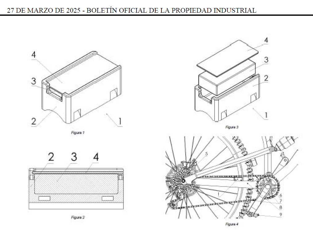 – En fecha 27 de marzo de 2025 se publicó al Boletín Oficial de la Propiedad Industrial nuestra invención como modelo de utilidad. En ella se detallan las distintas partes que componen el guiacadenas así como su funcionalidad.